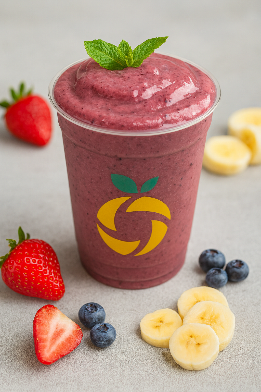 Fruitig. Romig. Vol energie. De ultieme mix van aardbei 🍓, banaan 🍌 en bosbes 🫐 met een vleugje glutenvrije haver en romige yoghurt. Een smoothie die zacht en vol smaakt, rijk aan vezels en vitamines. Elke slok geeft je een natuurlijke boost. Zonder toegevoegde suikers of kunstmatige ingrediënten. Altijd perfect vers geblend door onze slimme smoothie machine.