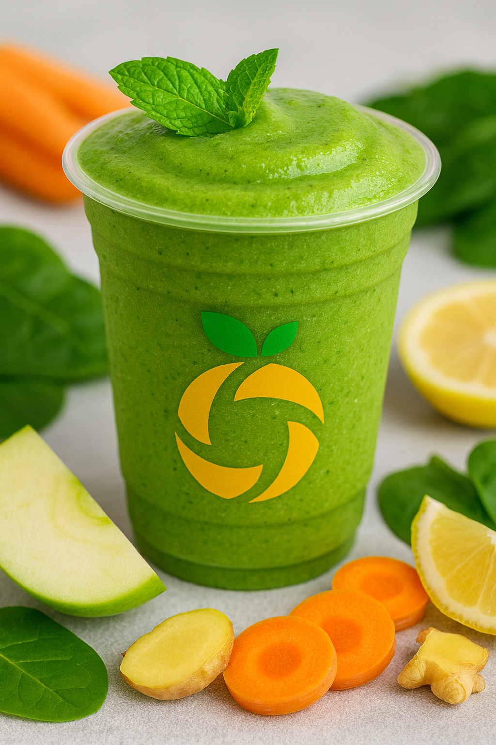 Deze smoothie combineert knapperige appel 🍏, frisse citroen 🍋, pittige gember 🫚, zachte spinazie 🌿 en zoete wortel 🥕 tot een perfecte balans van smaak en gezondheid. Een echte vitamineboost die je lichaam wakker schudt en je energie geeft. Altijd vers geblend in onze slimme Smoothie Machine, zonder toegevoegde suikers of kunstmatige toevoegingen.